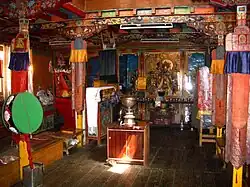 Несколько оригинальных изображений бодхисаттв, сохранившихся со времён перестройки монастыря в 1042 году, можно видеть в зале собраний монастыря. Подобные содержатся в Алчи-Гомпа и обладают большой эстетической ценностью. Главный зал посвящён Вайрочане. Также изображены сцены посещения Судханы, сына купца и другие фрески изображают сцены из жизни Будды[2].