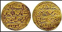 В начале XIX века в обращении были медные монеты номиналом 2 и 5 асперов, 1 билоновый харуб, 3 серебряные, 4, 6, 8 и 12 мазун, 1 и 2 буджу, и золотые¼, ½ и 1 султани[6].