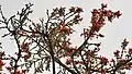 Цветки — ярко-оранжевые или красноватые, с лепестками 2,5 см, в кистях до 15 см длиной[2]. Во время цветения кисть напоминает пламя.