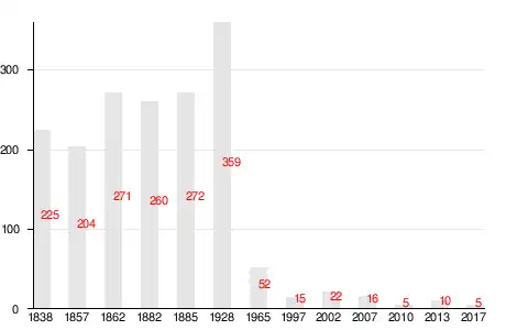 | 1838 | 1862[24] | 1885 | 1928 | 1965 | 1997 | 2007[25] |