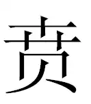 - ↑ 贲 - bì; fén; bēn; fěn; féi; fèn. Большой китайско-русский словарь. Дата обращения: 20 июля 2023. Архивировано 17 октября 2022 года.