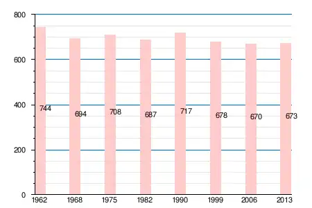Население коммуны в 2011 году составляло 652 человека[6], в 2012 году — 663 человека[7], а в 2013-м — 673 человека[5].