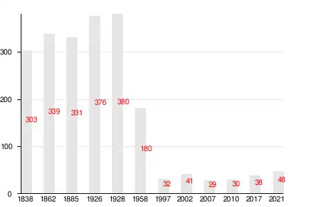 | 1838 | 1862[22] | 1885 | 1997 | 2007[23] | 2010[24] | 2017[1] |