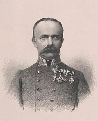Родился в Хорватии в семье офицера. Окончил Военную Терезианскую академию Вены, затем служил на разных должностях в австрийской армии. Во время революции 1848 года принимал участие в боевыых действиях на севере Италии под командованием генерала Эдуарда Клам-Галласа. Благодаря боевым заслугам был повышен в звании и награждён. После подавления революции продолжил военную карьеру. Во время Австро-итало-французской войны в 1859 году был назначен главнокомандующим 11-й армией, командуя которой принял участие в битве при Сольферино.