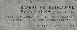 - ↑ Энциклопедия Санкт-Петербурга, мемориальная доска В. П. Вологдину. Дата обращения: 17 июня 2022. Архивировано 8 октября 2018 года.
