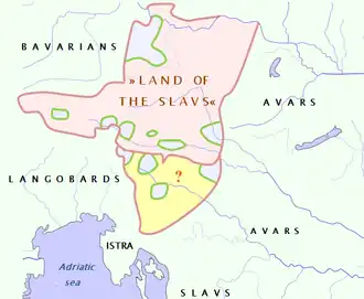 - ↑ Fallon, Steve. History: The Duchy of Carantania // Slovenia (англ.). — 6th. — Lonely Planet, 2010. — P. 28. — ISBN 9781741048575.