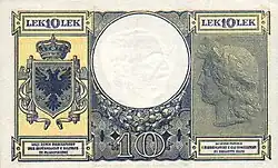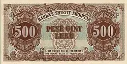 В 1939 году Албания была оккупирована Италией. В 1940 году итальянской администрацией были выпущены банкноты номиналом 2 и 10 леков и 100 франгов. В 1942 году дополнительно была выпущена банкнота номиналом 5 леков[4].