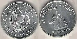 | 2 лека | 26 мм | 7.6 г | Гладкий | Герб НСРА | Албанский партизан на фоне красной звезды | Медно-никелевый сплав | |