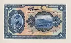 Первый шах династии Пехлеви Реза Пехлеви изображался на лицевой стороне всех выпусков денежных знаков Ирана всех достоинств, с 1928 (на туманах) по 1943 (на риалах).