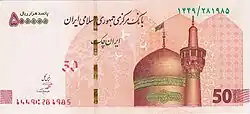 | 500 000 | 160×75 | фиолетовый | Мавзолей Имама Резы | Надписи на фарси и восточный узор | 2008 | ||