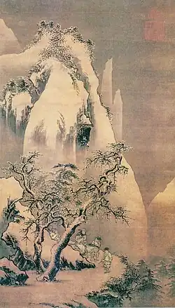 Одной из наиболее известных картин художника является его полотно В поисках цветущей сливы в снегу, написанная на шёлке тушью и красками в виде свитка размером 106,7х61,8 см. Она была создана во время правления императора Хунчжи (1487–1505). Подлинность картины засвидетельствована клеймом самого мастера и двумя императорскими печатями. На полотне изображена зимняя высокогорная местность с серым, хмурым небом, и с узкой тропой, по которой к окутанной туманом горной долине поднимается всадник со своими спутниками. Традиция указывает на китайского поэта эпохи Тан Мэн Хаожаня, поднимавшемся на своём ослике к горным вершинам в поисках вдохновения. Хоть сюжет не указывает конкретно на какое-либо его поэтическое произведение, тем не менее «цветущая слива» в названии является весьма часто встречающейся формой в китайском стихосложении. У поэтов Восточной Азии цветок сливы является первым расцветающим цветком весны и пользуется особой любовью. Особого мастерства художник здесь достигает в изображении различной степени показанных тушью серых тонов тумана и их контрасту с возвышающимися скалами и верхушками деревьев.