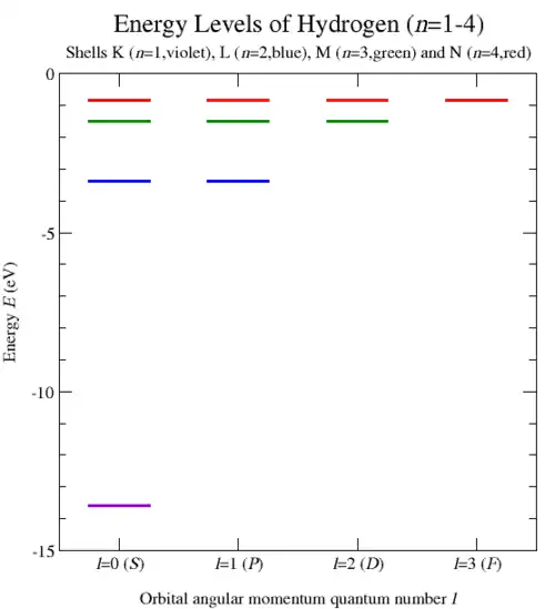 Симметрия повышается для центральной силы, обратной квадрату расстояния. Специфическая симметрия проблемы Кеплера приводит к сохранению как вектора углового момента L, так и вектора Лапласа — Рунге — Ленца A (как определено выше) и в квантовой механике гарантирует, что уровни энергии атома водорода не зависят от квантовых чисел углового момента l и m. Симметрия является более тонкой, потому что операция симметрии должна осуществляться в пространстве большей размерности; такие симметрии часто называют скрытыми симметриями[35]. С точки зрения классической механики более высокая симметрия задачи Кеплера учитывает непрерывные изменения орбит, которые сохраняют энергию, но не угловой момент. Другими словами, орбиты с одинаковой энергией, но различными угловыми моментами (эксцентриситетом) могут быть преобразованы непрерывно друг в друга. Квантовомеханически это соответствует смешиванию орбиталей, которые отличаются квантовыми числами l и m, например, атомные орбитали s типа (l = 0) и p типа (l = 1). Такое смешивание нельзя получить обычными трёхмерными трансляциями или вращениями, но оно эквивалентно вращению в пространстве с более высоким измерением.
