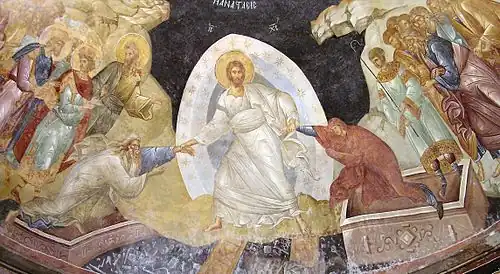 ![]() Сошествие Христа в ад (мозаика монастыря Осиос Лукас, XI век) | |