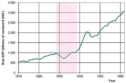 - ↑ В статье Кристины Ромер о Великой депрессии в энциклопедии «Британника» указывается, что Великая депрессия «продолжалась примерно до 1941 года». См.: アーカイブされたコピー. Дата обращения: 10 июля 2012. Архивировано 14 декабря 2011 года.