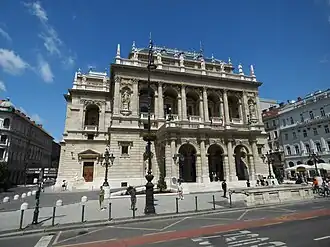 Перед зданием театра установлены памятники Ференцу Листу и Ференцу Эркелю. Другим оперным театром в Будапеште является Театр Эркеля.