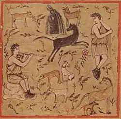 Судя по эпизоду с мантуанским поместьем, к 41 году до н. э. Публий уже обрел определённую значимость как поэт и обзавёлся благодаря этому высокими покровителями. Его позиции в литературных кругах укрепились после публикации результата трёхлетней работы — сборника эклог под названием «Пастушеские стихи» или «Буколики» (это событие исследователи датируют предположительно 39 годом до н. э.)[51][52][53]. «Буколики», условным местом действия которых стала Аркадия, были основаны в том числе на автобиографическом материале, и Светоний даже утверждает, что Вергилий их написал, дабы «прославить» своих благодетелей — Альфена Вара, Поллиона и Галла[54] (Поллиону могла принадлежать и сама идея сборника[53]). Эти имена действительно упоминаются в эклогах. Поэт пишет: