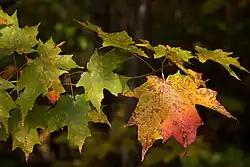 | Acer saccharum Marshall | Acer | Клён сахарный | Acer hispidum Schwer. Acer palmifolium Borkh. Acer saccharophorum K.Koch Acer saccharinum Wangenh.[4] Acer subglaucum Bush Acer treleaseanum Bush | Канада (Онтарио, Квебек), восточные штаты США, север Мексики, Гватемала |  |