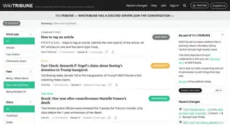 - ↑ Adrienne LaFrance (25 апреля 2017), The Problem With WikiTribune, The Atlantic, Архивировано 1 апреля 2018, Дата обращения: 13 марта 2018 Источник. Дата обращения: 13 марта 2018. Архивировано 1 апреля 2018 года.