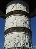 Бронзовая скульптура, изображает всадника в античных одеждах с обнажённым мечом в вытянутой руке и очень напоминает фигуру Александра Македонского на своем Буцефале. Бронзовая композиция размещается на роскошном постаменте в виде древней колонны, украшенной скульптурами воинов у основания, барельефами и чеканкой с батальными сценами.