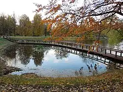 Садово-парковый комплекс | На территории расположен уникальный для Москвы каскад прудов, из которых вытекает река Раменка. Каскад был полностью отреставрирован в 2005—2006 годах путём полного осушения пространства прудов и чистки дна, укрепления береговой линии. Усадьба — место произрастания редких экземпляров дуба, на её территории существует вязовая аллея, являющаяся объектом охраны как памятник природы. Парковая зона территории усадьбы является местом обитания белок, некоторых видов птиц, в том числе дятлов и сорок. На территории парка обитают редкие виды насекомых[28]. |