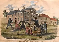 Группа мстителей, известная как «парни из Пакстона» (англ. Paxton Boys), обратила свой гнев на мирных индейцев, многие из которых были христианами и жили в небольших анклавах посреди белых поселений Пенсильвании. Группа состояла в основном из шотландо-ирландцев, исповедующих пресвитерианство и являвшихся ополченцами из небольшого поселения Пакстон[187]. 14 декабря 1763 года, основываясь на слухах о том, что в индейской деревне Конестога был замечен военный отряд индейцев, группа из более чем 50 мстителей из Пакстона отправилась в деревню и убила шесть саскуэханноков, которых они там нашли. Сняв со всех скальпы и разграбив хижины индейцев, ополченцы вернулись домой[188][189]. Власти поместили 14 выживших членов племени под охрану в окружной тюрьме. 27 декабря из Пакстона выступил ещё один отряд, чтобы довершить резню. Около ста вооружённых людей ворвались в тюрьму и убили оставшихся индейцев. Отсутствие эффективного государственного контроля и широкое сочувствие к убийцам в приграничных округах привели к тому, что они так и не были найдены и привлечены к ответственности[190][191].