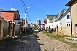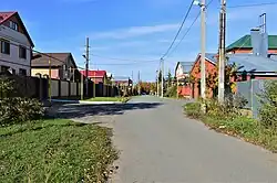 Первоначально указанный посёлок имел одноэтажную усадебную застройку, которая до настоящего времени не сохранилась. Сейчас на этом месте находятся несколько трёх- и четырёхэтажных многоквартирных домов, двух- и трёхэтажные дома коттеджного типа, а также одно крупное двухэтажное домовладение дворцового типа (ул. Строителей, 1). В основном эти здания были возведены в 2010-е годы.