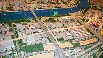 Область проведения Expo 2010 расположилась между мостами Наньпу (кит. упр. 南浦大桥) и Лупу (кит. упр. 卢浦大桥) через реку Хуанпу и заняла площадь 5,28 км² на обоих берегах. 31°11′38″ с. ш. 121°29′10″ в. д.