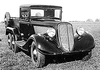 В 1936 году под руководством инженера-конструктора Виталия Андреевича Грачёва был собран опытный автомобиль повышенной проходимости под обозначением ГАЗ-21[1]. Это был пикап (позднее появились седан и «тёщино место», последний — под обозначением ГАЗ-25) с высокими бортами и тремя мостами, из которых ведущими были два задних (формула 6×4). Кабина, сцепление и коробка передач были позаимствованы у ГАЗ-АА, передняя часть автомобиля, включая двигатель и мост, взята у М-1. Рама была специально разработана. Между передним мостом и задней тележкой были установлены подпорные катки (такие же впоследствии применены на БРДМ-1).