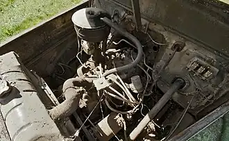 Двигатель автомобиля представлял собой дальнейшее развитие ГАЗ-11, в своё время созданного на основе силового агрегата фирмы Dodge (в свою очередь, бывшего вариантом нижнеклапанного мотора Chrysler), лицензия на производство которого была приобретена заводом ещё в 1937 году[7][8]. Несмотря на достаточно большой, по американским меркам, возраст (двигатель пошёл в серию ещё в 1928 году), он был и для 1940-х годов достаточно совершенен конструктивно (его варианты устанавливались на легковые автомобили различных филиалов компании Chrysler до 1959 года включительно, на пикапы — до начала 1960-х, а на различные образцы коммерческого транспорта и стационарные установки — до середины 70-х), что было в особенности заметно по сравнению с находившимися в те годы в производстве на ГАЗе архаичными двигателями типа Ford A.