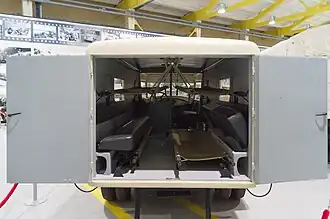 В её салоне можно было перевозить либо четырёх лежачих на носилках и двух сидевших на откидных сидениях, либо двоих на подвешенных носилках и пятерых на откидных сидениях. В санитарном отделении был установлен калорифер для обогрева и смонтирована система вентиляции, задние колеса получили крылья с отбортовкой по арке.