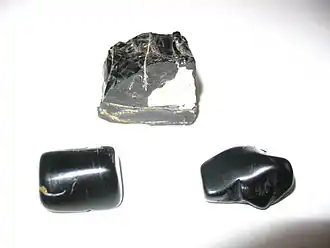 Лучшие гагаты имеют равномерную чёрную окраску, им придают прекрасную бархатистую полировку.