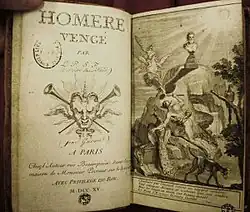 - Homère vengé, ou Réponse à M. de La Motte sur l’Iliade (1715). Réédition : Slatkine, Genève, 1971.