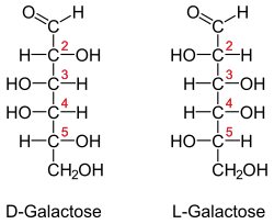 (2R,3S,4S,5R)-2,3,4,5,6-пентагидроксигексаналь (D-галактоза), (2S,3R,4R,5S)-2,3,4,5,6-пентагидроксигексаналь (L-галактоза) |