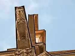Несмотря на то, что в отдельных случаях система сбора осадков в составе готической конструкции весьма совершенна и может включать несколько последовательно задействованных элементов (например, канавки и промежуточные гаргуйли, каскадно сбрасывающие воду на поперечные желоба по верху аркбутанов[26]), она, в отсутствие решения вертикального спуска воды к отмостке, остаётся полуорганизованным водоотводом. Штукатурные фасады, особенно чувствительные к намоканию, не могут быть в достаточной степени защищены этой системой. Принято считать, что в 1240 г., когда донжон лондонского Тауэра был побелён, на нём были впервые установлены свинцовые водосточные трубы[27]. В эпоху Возрождения, когда торжество античной эстетики привело в архитектуре к почти повсеместному упадку или значительной трансформации национальных строительных традиций и школ, прежняя продуманная система отвода дождевых вод деградировала: теперь свес кровли, поддержанный антаблементом с сильно выступающим карнизом, больше не угрожал стенам сыростью, вода стекала за счёт устройства слезника (сплошная канавка вдоль обращённой вниз поверхности карниза, препятствующая капиллярному току воды в направлении стены) или выступа кровельного материала (черепицы, шифера, железа). Вместе с водосточным жёлобом по обводу крыши исчезает и гаргуйль. Когда в конце XVII в. возвращается водосточный жёлоб[28], он чаще всего уже элемент кровли (технологически и эстетически), а не стены, и связан с организованным вертикальным водоотводом (водосточная труба).