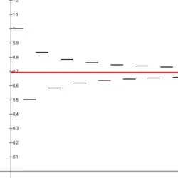 где — независимые, одинаково распределённые случайные величины, которые принимают значения +1 и −1 с одинаковой вероятностью ½. Показано, что этот ряд сходится с вероятностью 1, и сумма ряда есть случайная величина с интересными свойствами. Например, функция плотности вероятности, вычисленная в точках +2 или −2, имеет значение: