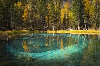 - ↑ "Глаз земной": почему туристы восхищаются уникальным гейзерным озером на Алтае. altapress.ru. Дата обращения: 19 апреля 2021. Архивировано 25 июня 2021 года.