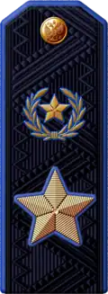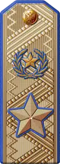 - С 2013 года одна большая звезда диаметром 40 мм с кантом или без него и эмблема диаметром 35 мм со звездой с кантом или без него в обрамлении венка на погонах[1].