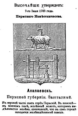 - ↑ Герб города Алапаевск | Геральдика.ру. Дата обращения: 29 октября 2020. Архивировано 17 января 2021 года.