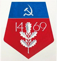 На парадном гербе дубовые ветви заменяются на ветки хмеля, а красная звезда на три орнамента "солнце".