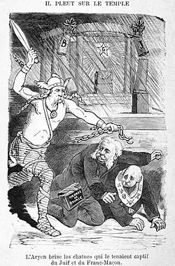 «Арийская раса» противопоставляется «семитской расе» в лице прежде всего евреев, откуда возник термин антисемитизм. При этом «семитской расе» приписываются сугубо отрицательные качества, делающие её прямой противоположностью «арийской расы». Утверждается, что стержнем мировой истории является «расовая борьба» «арийской» и «семитской рас»[24][25]. Как «раса господ»[11] «арийская раса» противопоставляется «неарийцам», рассматриваемым в качестве расово низших («недочеловеки») и экзистенциальной угрозы, которую, согласно этой идеологии, следует физически уничтожить[26]. В нацистской Германии эти идеи составляли неотъемлемую часть государственной расовой идеологии, которая привела к Холокосту[27][28].