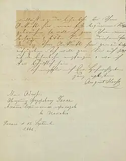 По долгу службы Августу Фёдоровичу часто приходилось вести переговоры с клиентами, среди которых бывали и известные люди. Например, сохранилось его письмо Карлу Эрнсту фон Бэру от 12 сентября 1866 года, посвящённое условиям доставки мебели и книг в Дерпт, куда выдающийся естествоиспытатель переехал в следующем году из Санкт-Петербурга[7].