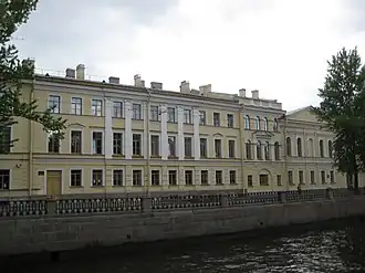 Для Дома воспитания в 1817 году у действительного статского советника Даниила Масальского, директора Училища корабельной архитектуры, за 100 тысяч рублей ассигнациями купили каменное трёхэтажное здание на Крюковом канале близ Кашиного моста. Его перестройкой и приспособлением занимался известный петербургский архитектор В. П. Стасов. Он украсил главный фасад пилястрами, во дворе выстроил жилой флигель. Постройка флигеля, служб и первоначальное Дома воспитания обошлось в сумму около 100 500 рублей ассигнациями.