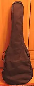 - Чехол — мягкий, обычно тканевый, футляр для защиты гитары от пыли и прочих внешних воздействий. По прочности намного уступает кофру, равно как и намного дешевле. Гитару рекомендуется хранить в чехле или кофре.