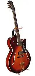 - Полуакустическая электрогитара — электрическая гитара, но в дополнение к звукоснимателю струн имеется полый акустический корпус, позволяющий гитаре звучать без электроусилителя. (Не следует путать с электроакустической гитарой, в которую вмонтирован пьезозвукосниматель, снимающий звуковые колебания с корпуса, а не со струн).