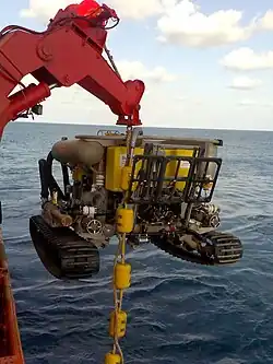 - телеуправляемые аппараты — подводный робот, связанный с надводным судном кабелем и управляемый оператором;