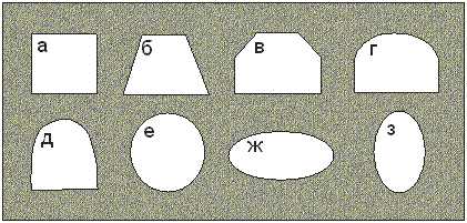Прямоугольная форма (а) чаще всего используется при отсутствии бокового давления пород и в тех случаях, когда выработки крепятся деревянной, штанговой (анкерной) или смешанной крепью (бетонные стенки и перекрытия из металлических балок).
