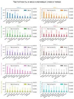 Тематики, озаглавленные по их ключевым словам (см. гистограммы правее) следующие: