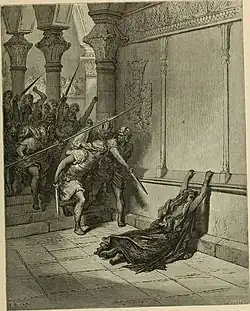 Иодай приказал вывести её из Храма — «и дали ей место, и когда она пришла ко входу конских ворот царского дома, там умертвили её» (Иосиф Флавий уточняет, что это были так называемые Царские ворота мулов). Гофолию «умертвили мечом в царском доме», а также её последователей, после этого были уничтожены все жертвенники Ваала. Новый царь снова восстанавливает Завет Божий с народом, хотя книга Царств по-прежнему замечает, что высоты не были отменены, и народ ещё приносил жертвы и курения на высотах[10].