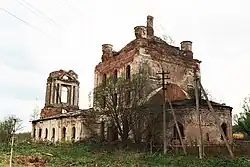 - руины церкви Троицы Живоначальной, построенной в 1794 г. В церкви венчались родители Николая Степановича Гумилёва[5].