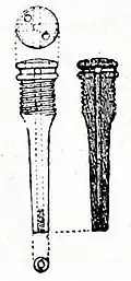 3-пудовая картечная бомба снаряжалась свинцовой втулкой, ввинчиваемой в её очко; перед выстрелом, в сквозной канал втулки вставляли бумажную гильзу, набитую порохом. В виду недостатков деревянных трубок (растрескивались при хранении, глохли при падении в рыхлую или болотистую землю и т. п.), при введении нарезных орудий эти трубки были заменены латунными (см. рисунок 2), ввинчиваемыми в очко снаряда, при чём канал их не доходил до наружного среза трубки, а пересекался здесь двумя поперечными каналами со стопином[1].